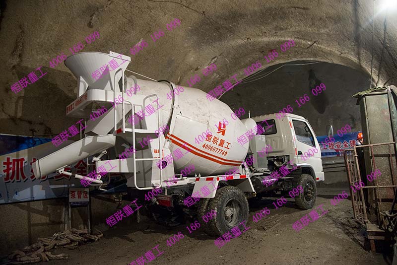小型攪拌車在隧道里施工